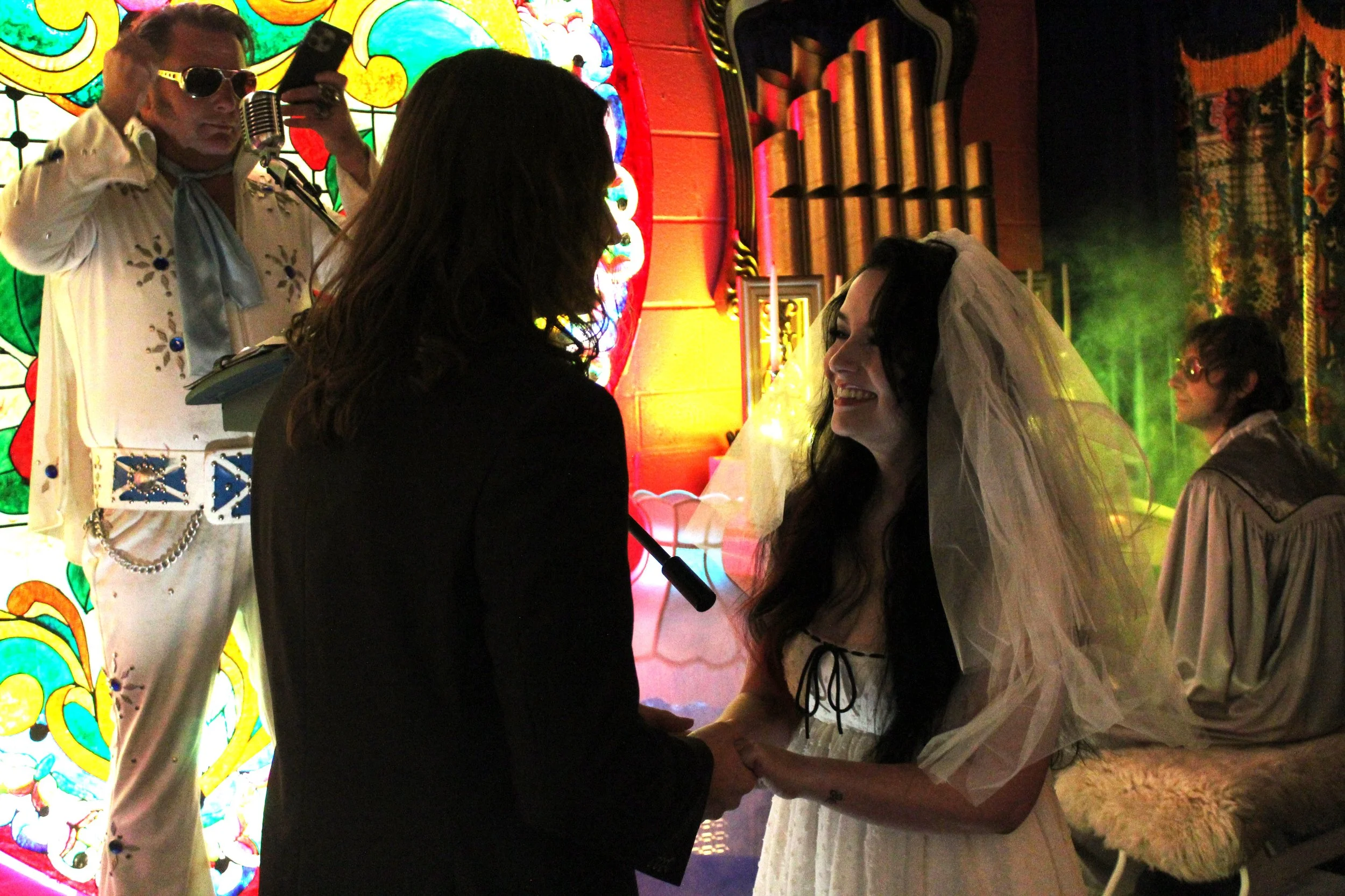 Vegas-style vows in Nashville—Elvis officiant, bold effects, live music, and unforgettable energy. For couples who love the spotlight.